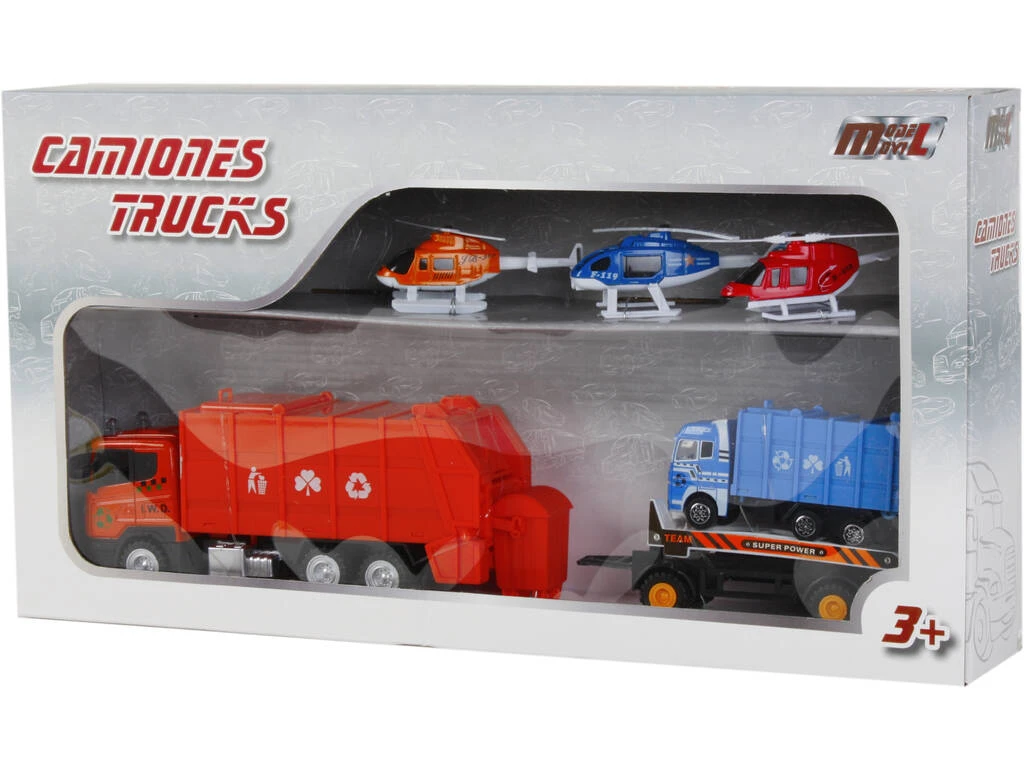 Preparate para la aventura con el conjunto de vehículos, tienes que llevar todos los residuos tóxicos a la planta de reciclaje. Los helicópteros controlan que todo vaya correcto. Utiliza en camión en los lugares mas difíciles de entrar.