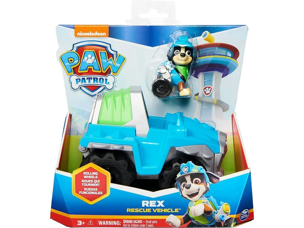 Incluye: 1 figura Rex con cabeza articulada y 1 vehículo de rescate con ruedas funcionales, rampa de acceso y hueco para la figura.