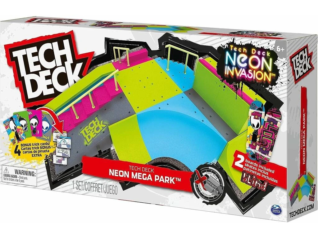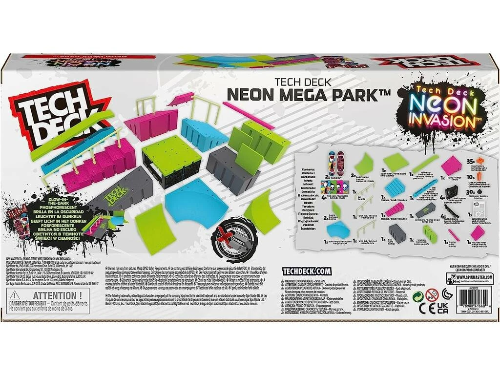 ¡Pon a prueba todo lo aprendido en este nuevo y colorido espacio! ¡Llévate a casa el nuevo Tech Deck Neon Mega Park de Spin Master!