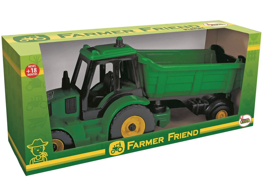 Fantástico tractor con volquete para realizar los trabajos más divertidos de la granja. Ahora podrás transportar cómodamente otros juguetes de un lado a otro, gracias al volquete de gran capacidad que incluye este tractor. El mejor amigo de un granjero es su tractor, ya que le ayuda a realizar duras tareas que sin su ayuda, serían muy complicadas. Arar la tierra, transportar el grano de un lado a otro, realizar reformas en la granja, etc.