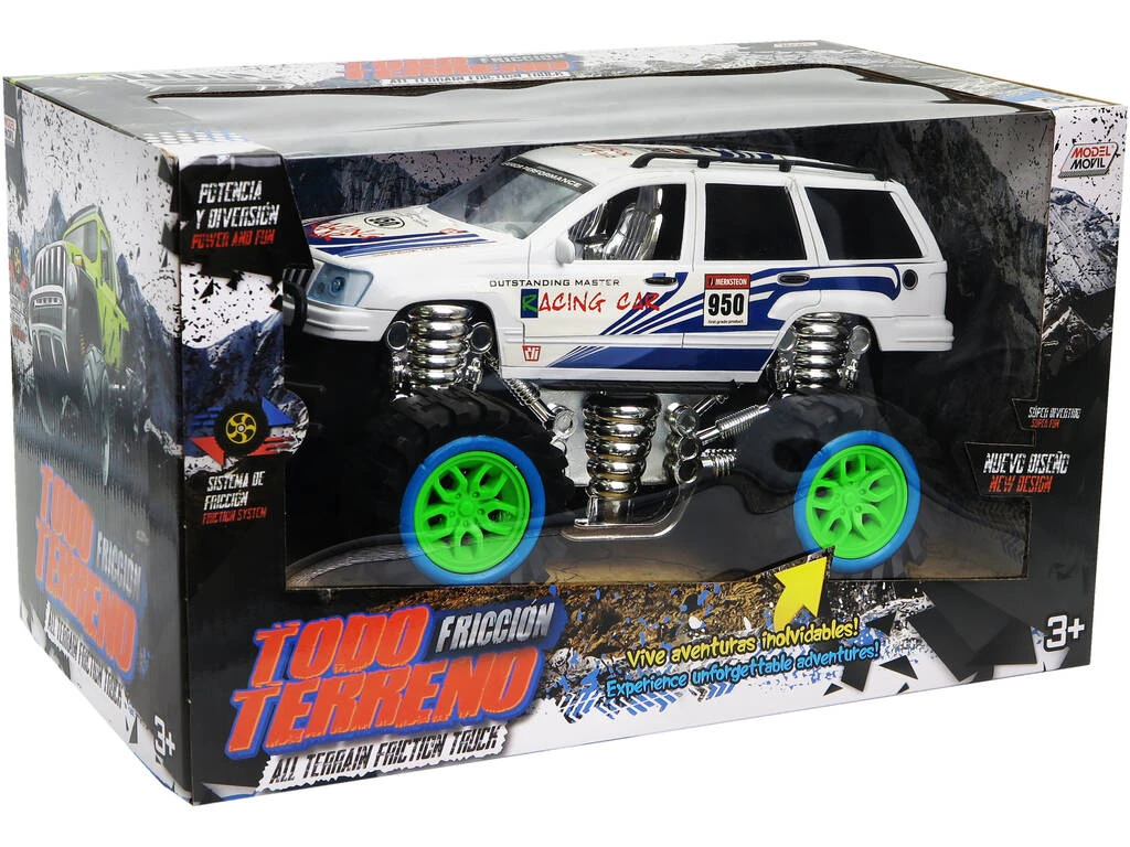Incluye: 1 vehículo de fricción Todoterreno Racing de color blanco.